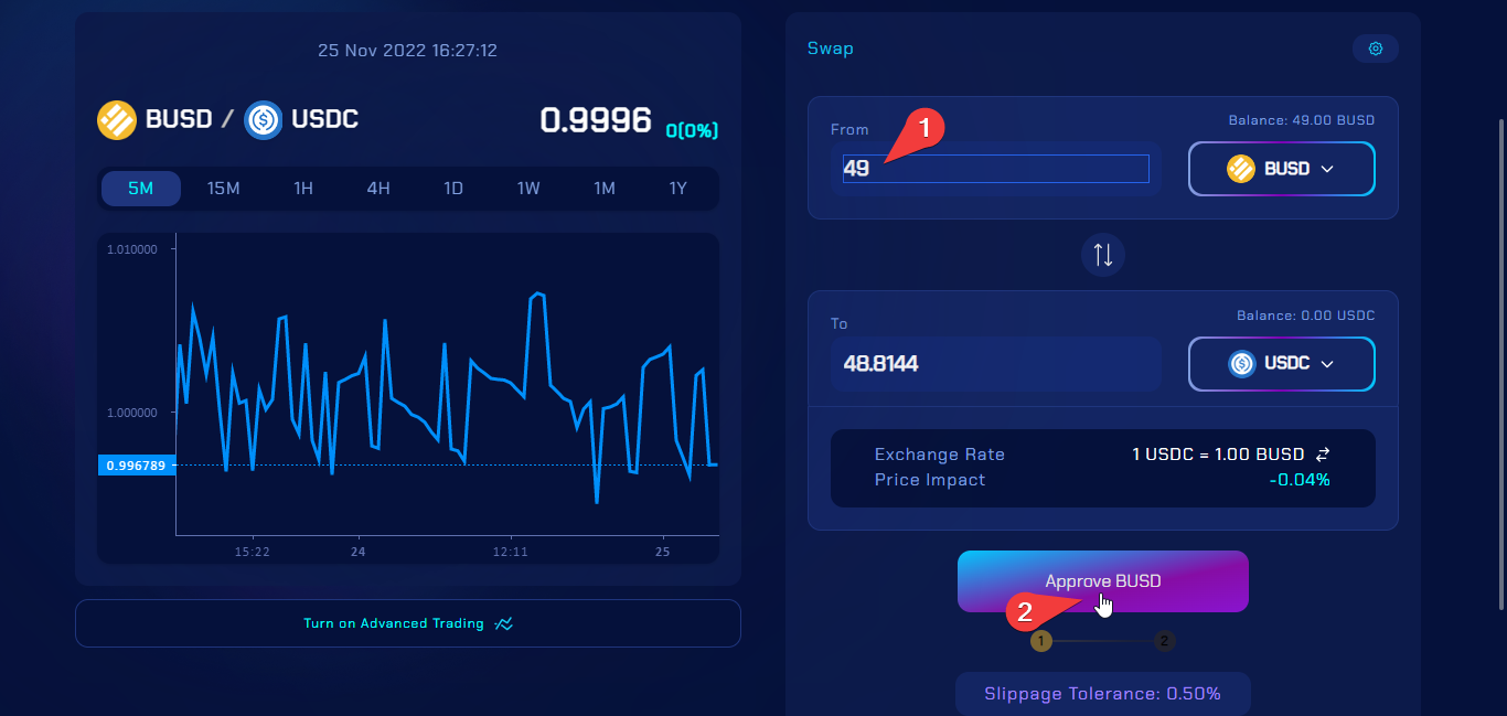 Next, enter the amount of tokens you want to buy and click on **Approve**.