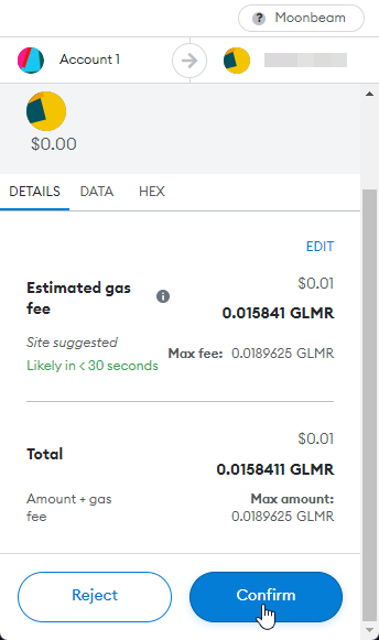 Make sure your MetaMask wallet is connected to the Moonbeam network!