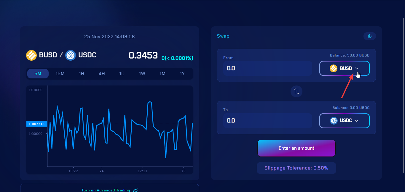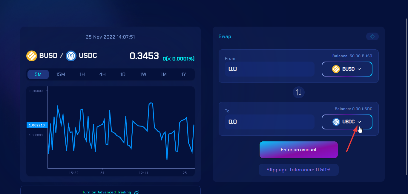 Next, select the token that you want to exchange, as shown below.