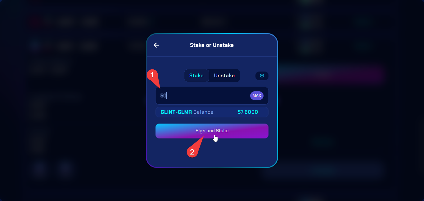 Enter the amount you wish to stake. You can also see your balance that you can stake.